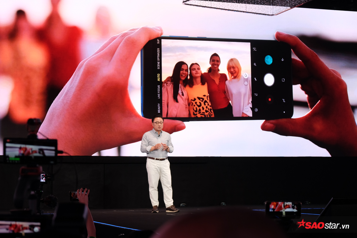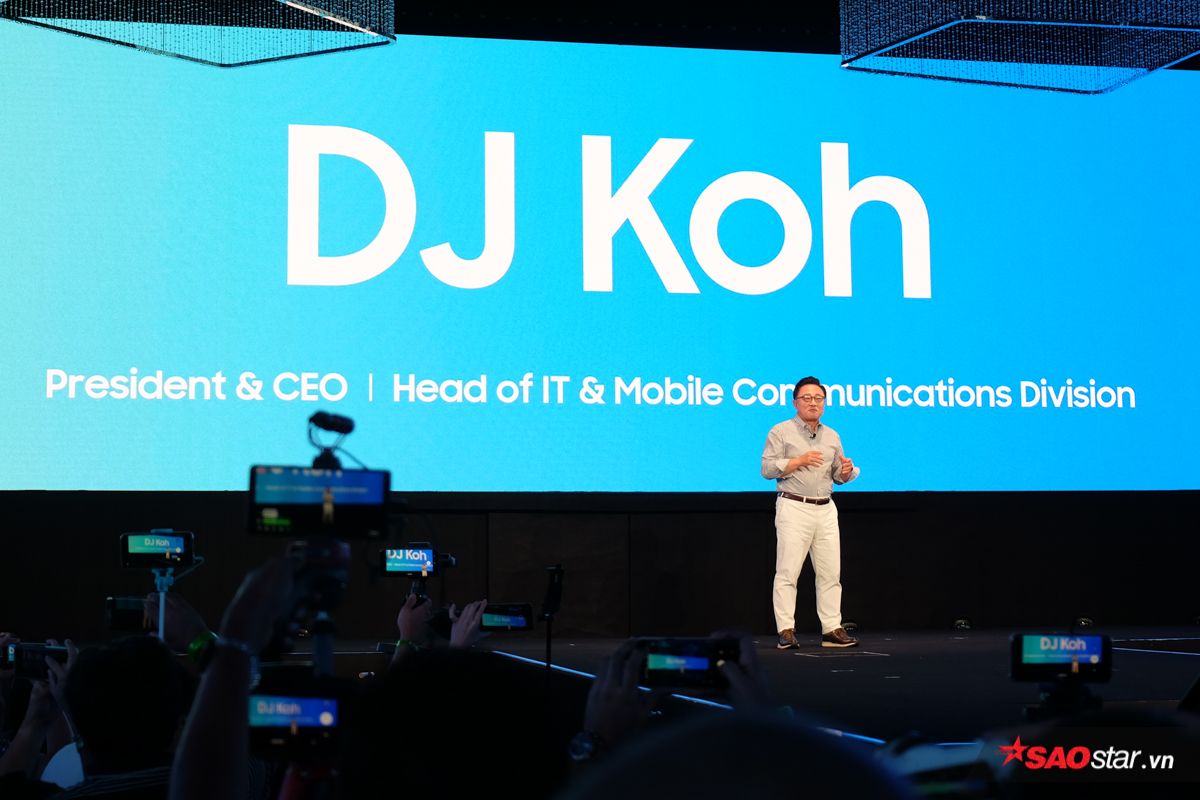 Ông DJ Koh, , Chủ tịch kiêm CEO mảng Kinh doanh Di động tại Công ty Điện tử Samsung, trên sân khấu sự kiện ra mắt sản phẩm.