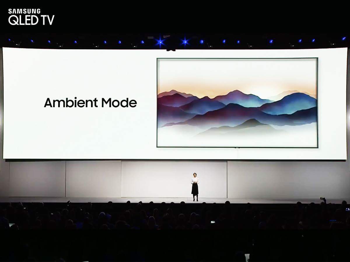 Chế độ hình nền Ambient Mode là chế độ đặc biệt có thể nhận diện màu sắc hoặc hoa văn trên tường, và sau đó đồng bộ hóa hình nền của TV với hoa văn này, nhằm góp phần hài hòa với phong cách trang trí nội thất của căn phòng. Bên cạnh đó, chế độ này còn hỗ trợ hiển thị những thông tin đa dạng như giao thông, thời tiết và tin tức. Đặc biệt, chế độ Ambient Mode còn tự động đồng bộ hóa với tín hiệu di động của người dùng để kích hoạt nội dung trên màn hình và tắt khi người dùng rời khỏi phòng.