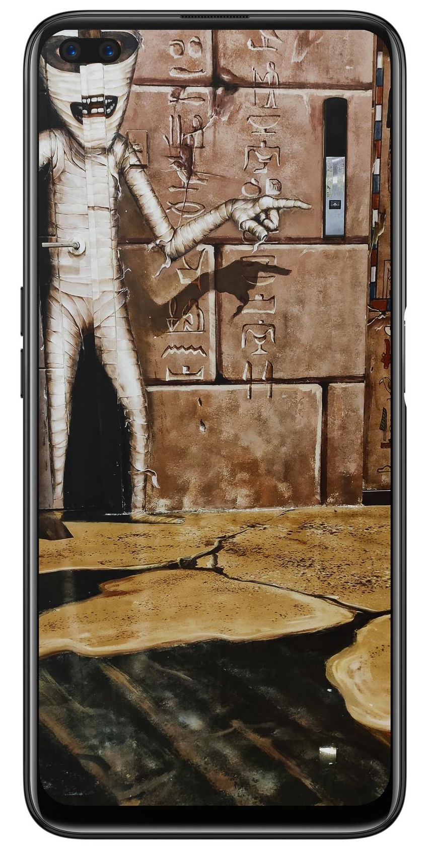 Cụm camera selfie kép của Realme 6 Pro áp dụng hình nền kiểu này càng tôn thêm nét cool ngầu đúng không.