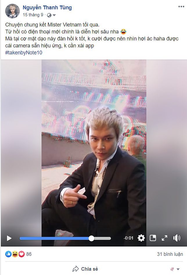 Ngoài khả năng làm mờ hậu cảnh, “dế cưng” này còn có thể tạo ra hiệu ứng Điểm Màu (chuyển hậu cảnh thành đen trắng, giữ nguyên màu sắc chủ thể), khiến nam ca sĩ càng nổi bật hơn. Điểm nhấn ấn tượng trong video này còn đến từ dòng hashtag #todayThinhWears viết tay ngay trên video. Có vẻ như thời kỳ của những hashtag đánh máy khô cứng sắp phải nhường chỗ cho các hashtag viết tay ấn tượng bằng bút S Pen.