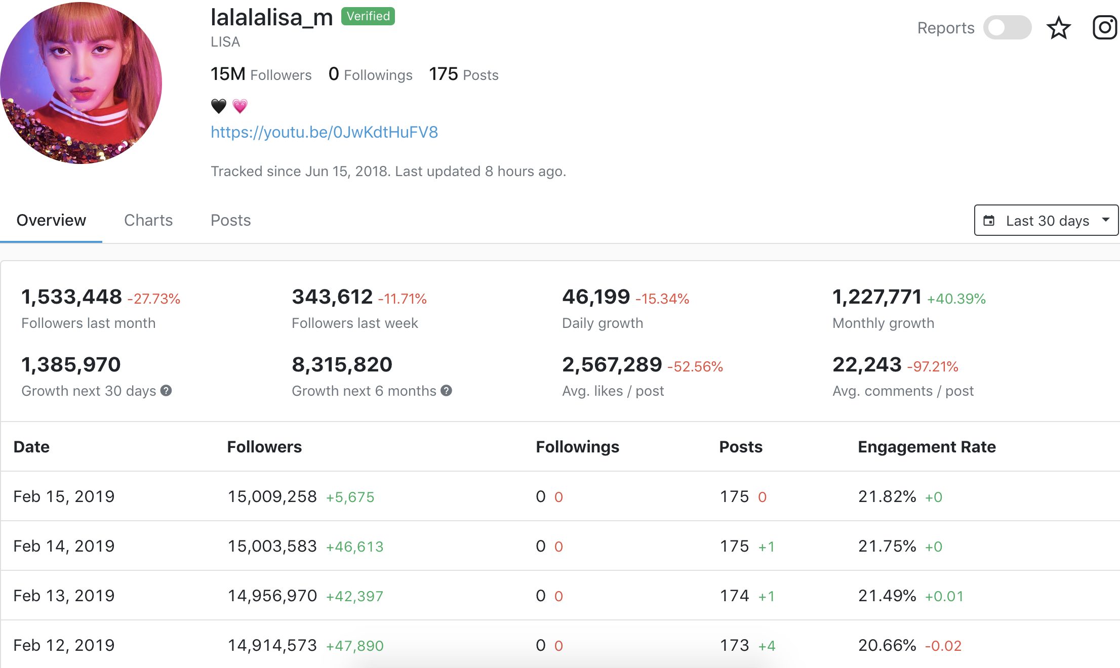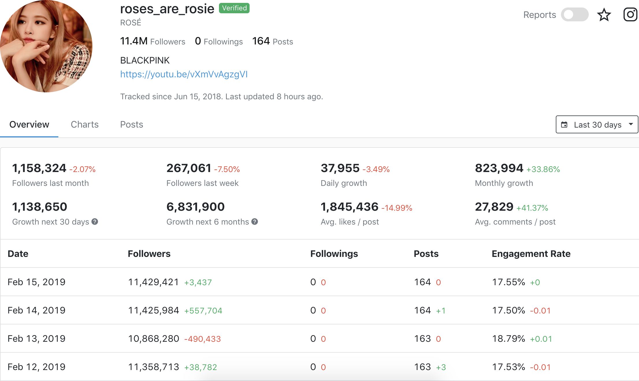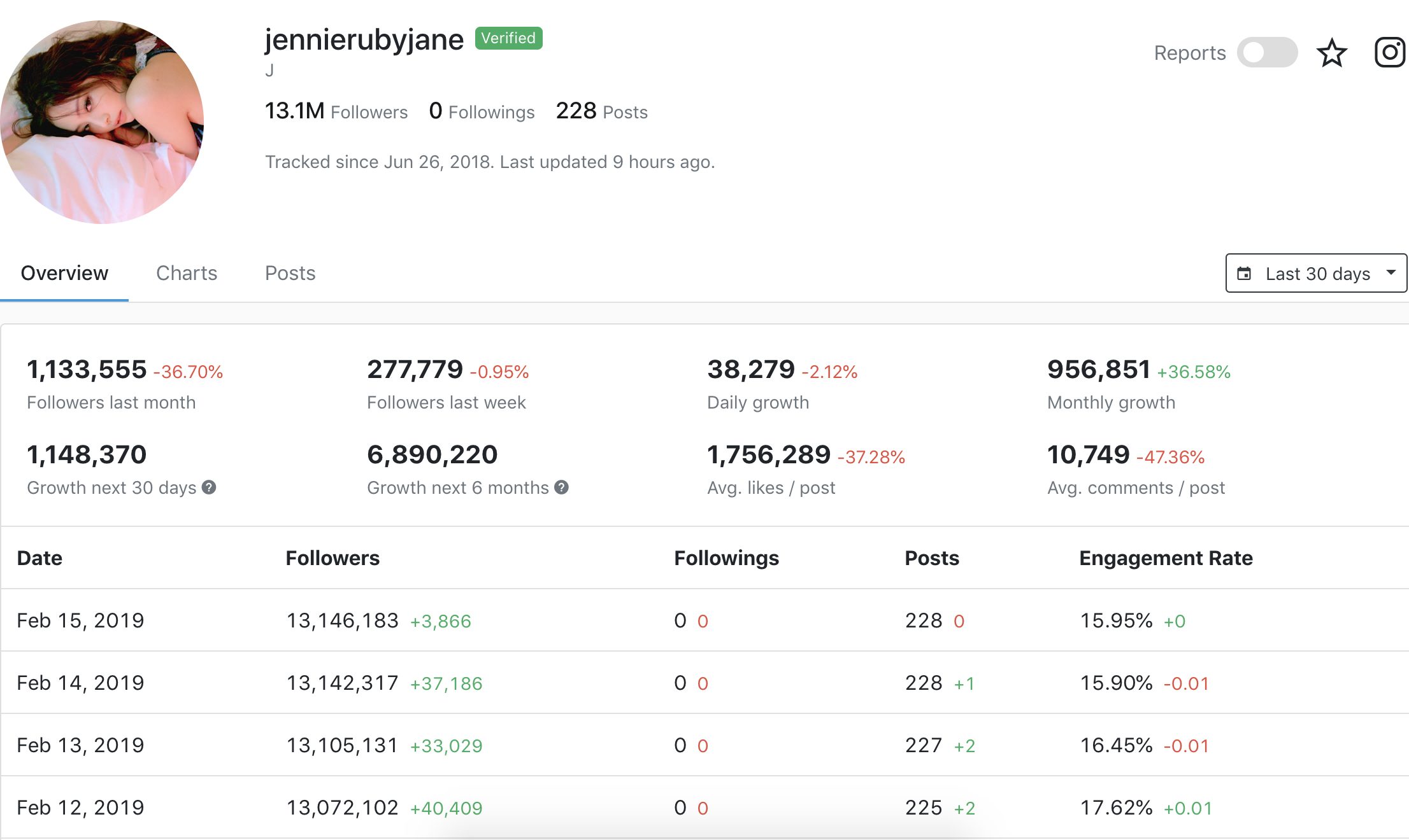 Số liệu thống kê trên lấy từ trang phân tích IGBlade thu thập nguồn Instagram cho thấy, tất cả những ngôi sao mất lượng lớn followers cũng được hoàn trả lại toàn vẹn như nhau.