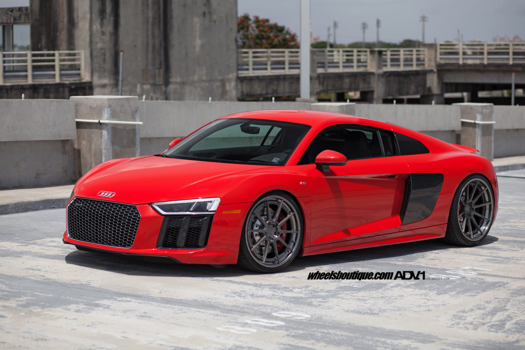 Audi R8 V10 Plus sử dụng động cơ V10, dung tích 5,2 lít, công suất 610 mã lực và mô-men xoắn 560 Nm, kết hợp hộp số 7 cấp tự động và 3 chế độ lái. Hệ dẫn động AWD. Theo công bố của nhà sản xuất, xe có khả năng tăng tốc từ 0-100 km/h trong chỉ 3,2 giây và vận tốc tối đa 330 km/h. (Ảnh: Adv1wheels)