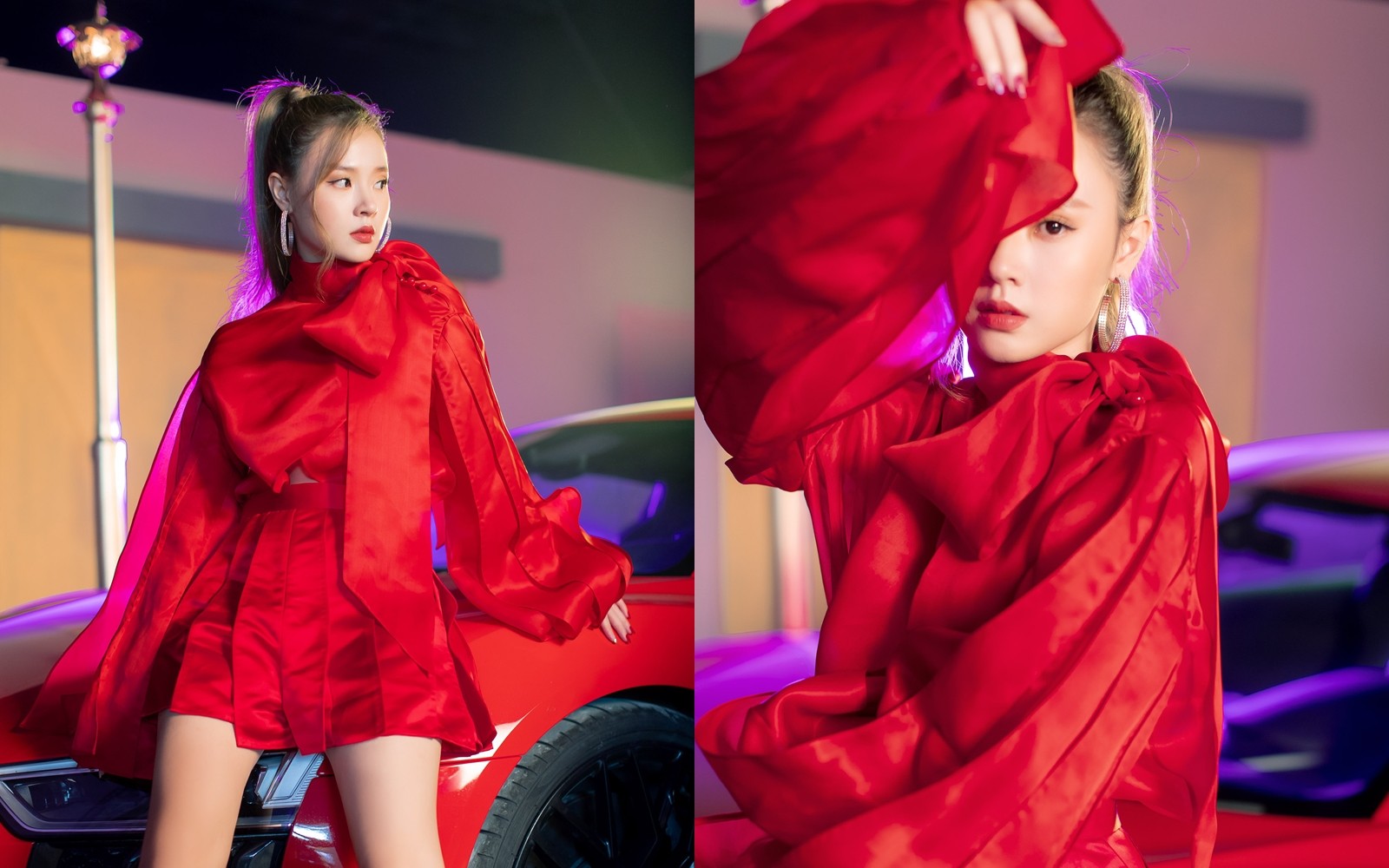 Theo tìm hiểu, chiếc xe màu đỏ mà Midu sử dụng để quay MV mới là Audi R8 V10 Plus 2016, một trong những siêu xe được các đại gia, ca sĩ giàu có ưa chuộng tại Việt Nam, có thể kể đến là thiếu gia Phan Thành - tình cũ của Midu, Cường Đô La, hay cặp đôi Đông Nhi - Ông Cao Thắng. (Ảnh: Midu)