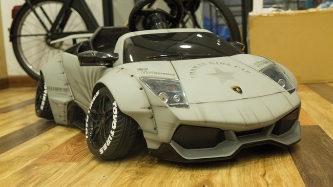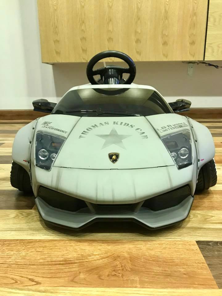Hiện nay, những mẫu siêu xe như Lamborghini hoặc Ferrari phiên bản dành cho trẻ em có rất nhiều tại thị trường Việt Nam. Tuy nhiên, siêu xe Lamborghini Murcielago LP640 mui trần với gói độ body kit Liberty Walk dành cho trẻ em là chiếc duy nhất tại Việt Nam.