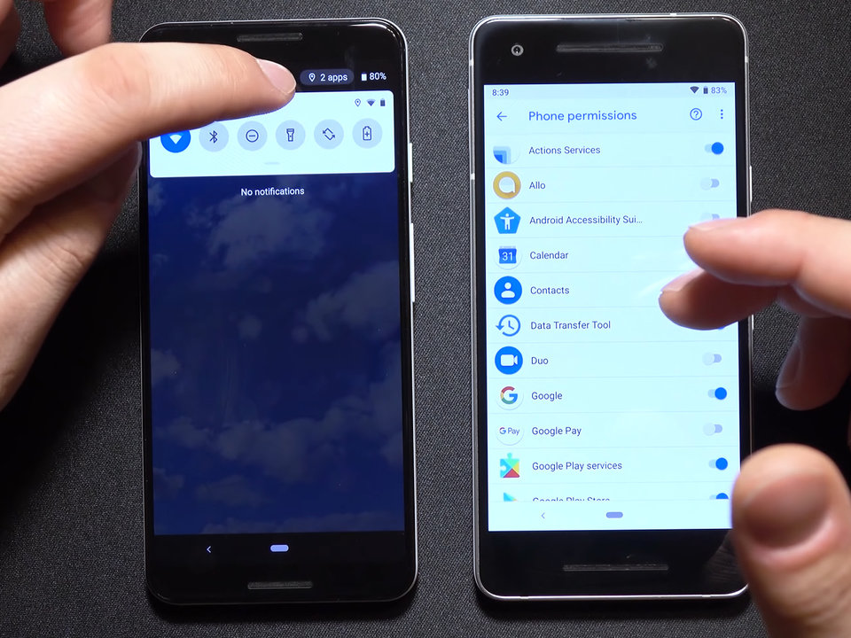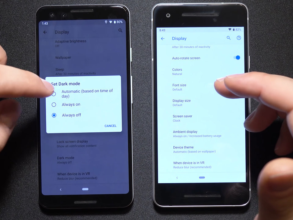 Hãy cùng xem qua một số thay đổi ban đầu sẽ có trên Android Q. Bạn đọc lưu ý ở những hình ảnh dưới đây Android Q ở bên tay trái còn Android P ở bên tay phải.