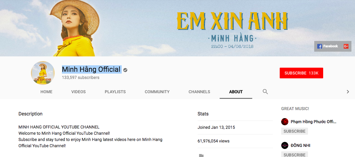 Kênh YouTube của Minh Hằng được lập vào trung tuần tháng 1 năm 2015.
