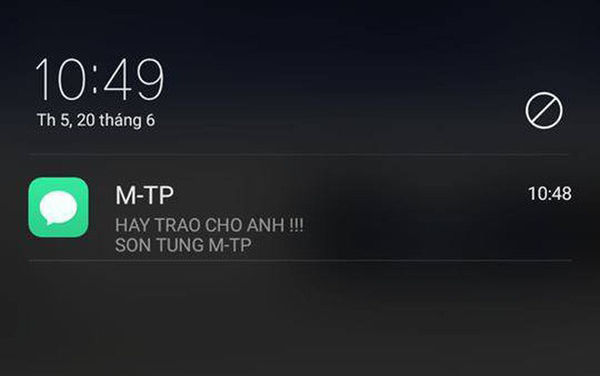 Trung tuần tháng 6, khi tin đồn về màn comeback của Sơn Tùng M-TP mới chỉ vừa kịp xuất hiện, nhiều người cũng cảm thấy bất ngờ khi nhận được tin nhắn đến từ “M-TP” cùng nội dung “”HÃY TRAO CHO ANH!!! SON TUNG M-TP.” Điều đáng nói là tin nhắn này đến từ một số máy chưa từng được lưu trong danh bạ của người nhận được.