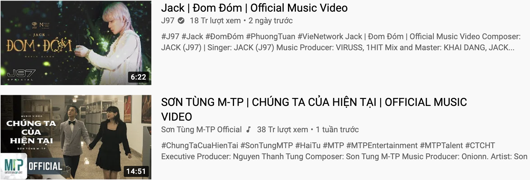 Với những ca sĩ sở hữu lượng fan đông đảo như Sơn Tùng M-TP và Jack, chuyện sản phẩm âm nhạc mới đạt vị trí cao, nhận được lượng xem khủng không còn là chuyện lạ.