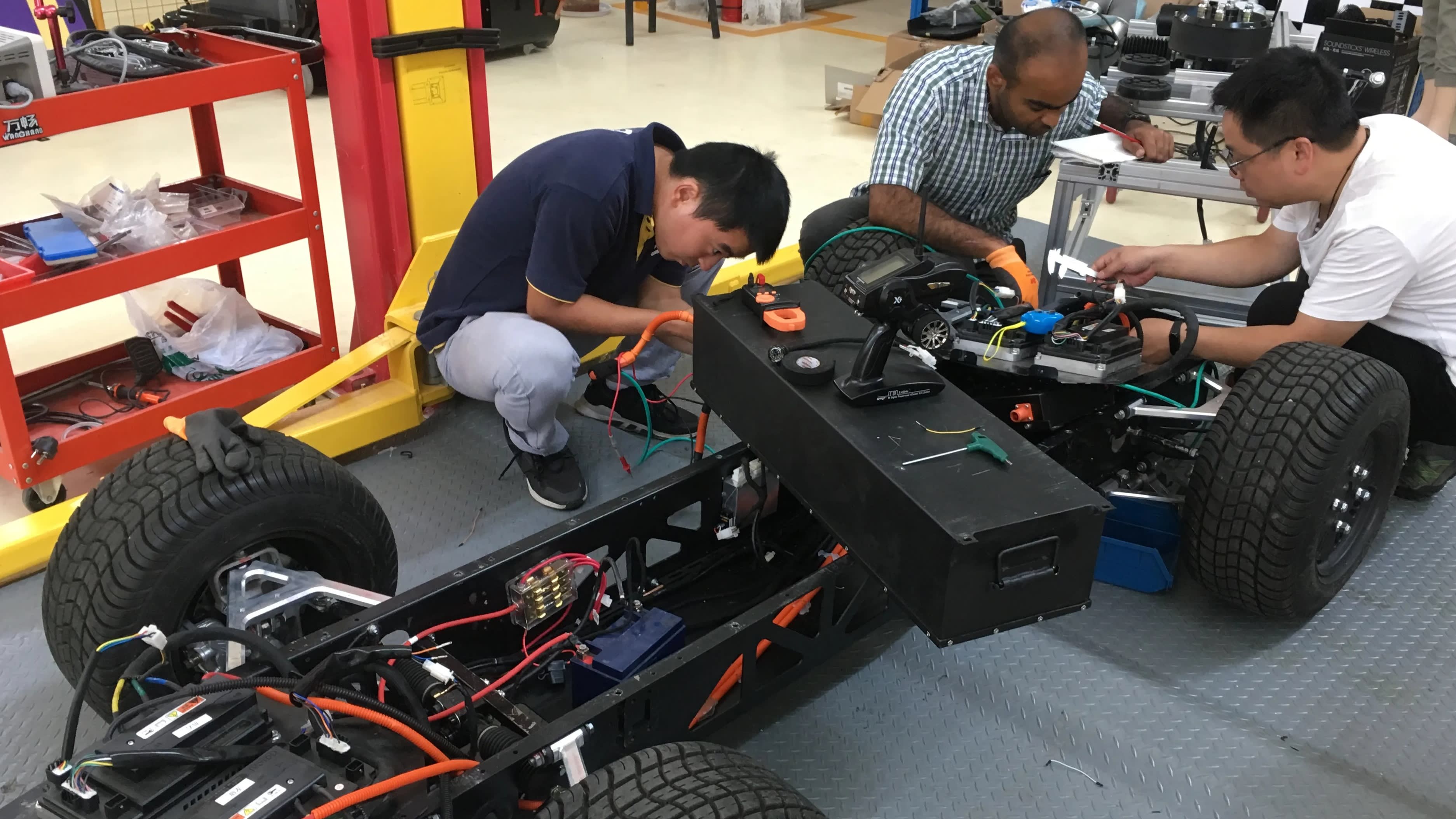 Các kĩ sư của Pix đang thực hiện lắp ráp một chiếc xe tại Quế Dương, Trung Quốc. (Ảnh: Nikkei)