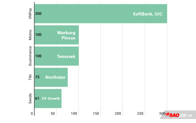 Một số startup nhận đầu tư lớn trong năm 2019 tại Việt Nam. (Số liệu tổng hợp từ DealStreetAsia, đơn vị: triệu USD)