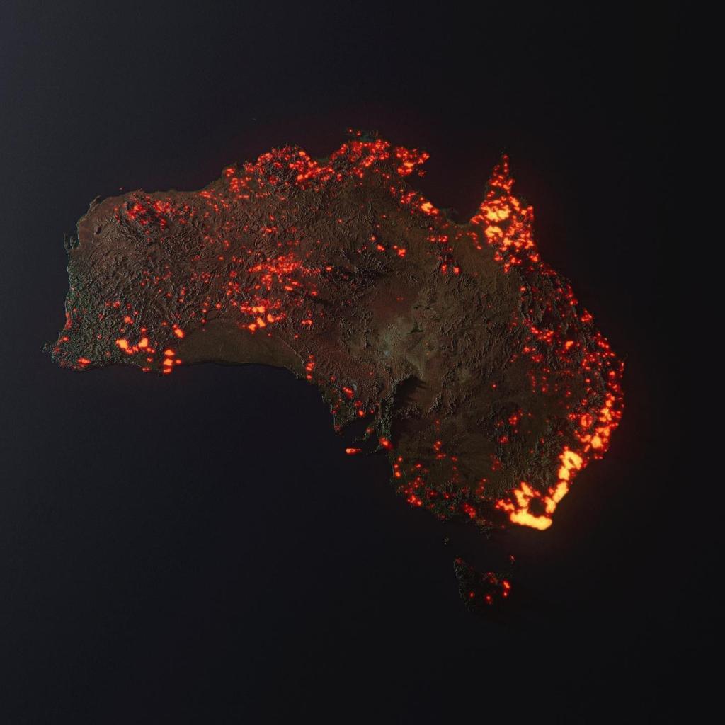 Theo Anthony Hearsey, bức ảnh được thiết kế dựa trên dữ liệu về những vụ cháy rừng tại Úc trong suốt 1 tháng qua. Thế nên, thực tế là có nhiều đám cháy đã được dập tắt ở thời điểm hiện tại