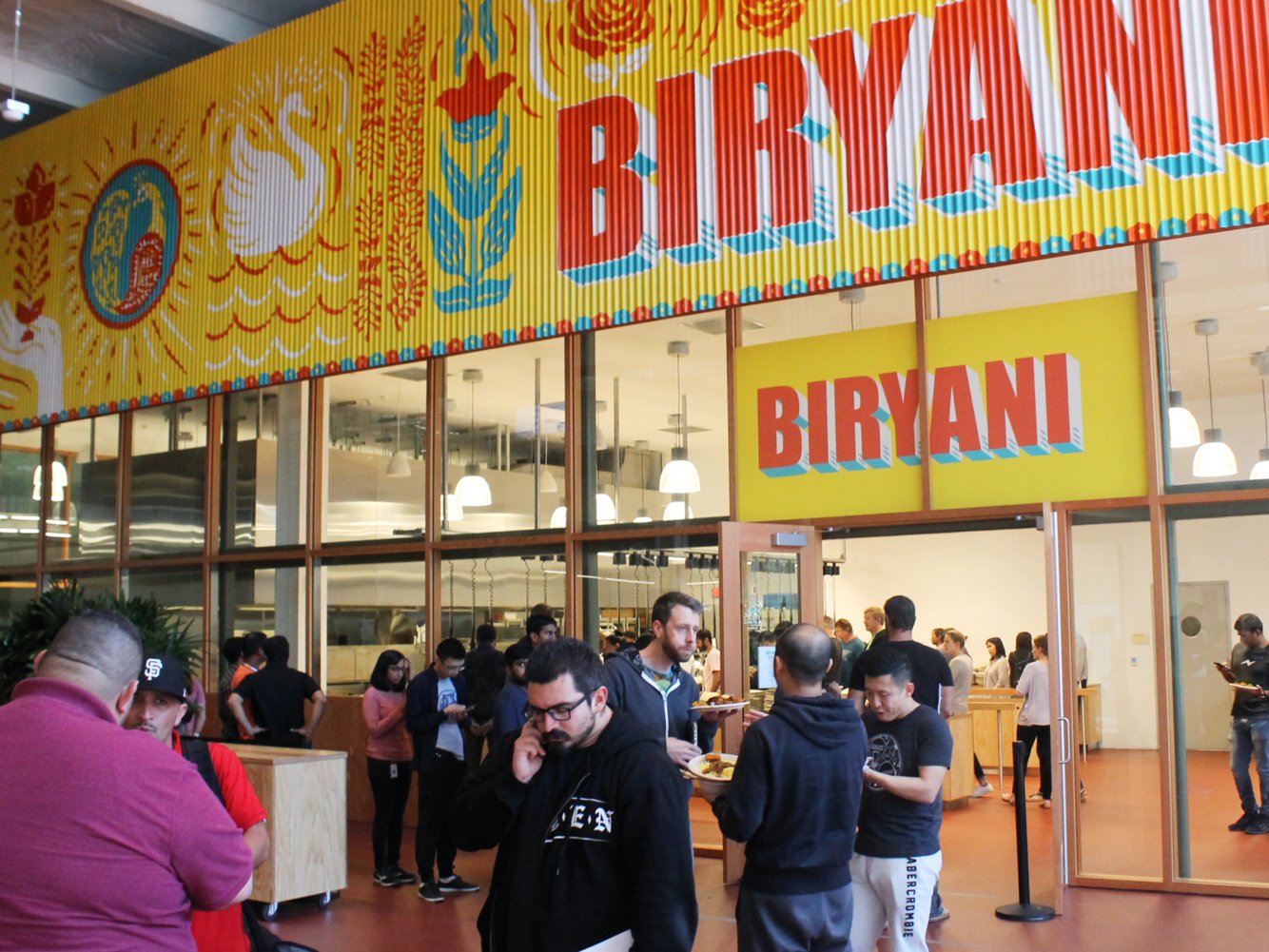 Cảnh ăn trưa tại Facebook. Tại đây có đa dạng các nhà hàng và món ăn.