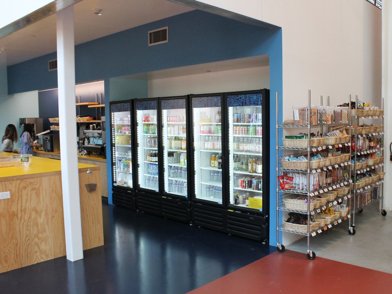 Một khu bếp mini nơi nhân viên có thể tự phục vụ đồ uống và các món ăn vặt hàng ngày.