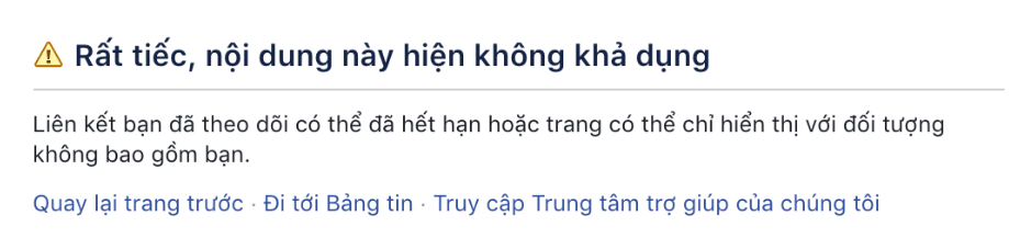 Thông báo người dùng nhận được khi vào đường dẫn trang cá nhân của Sơn Tùng trên Facebook.