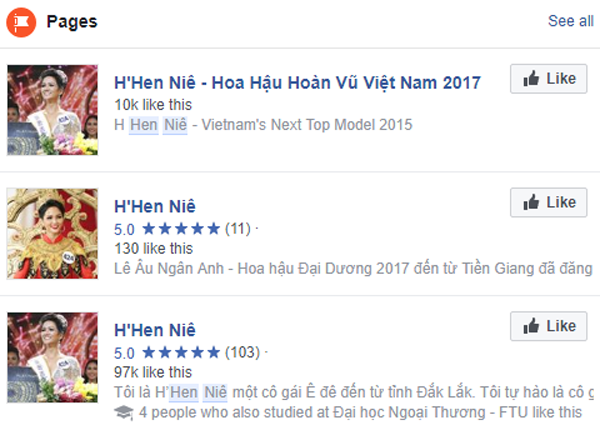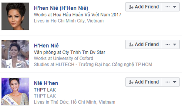 Ngay sau khi đăng quang vị trí cao nhất cuộc thi Hoa hậu Hoàn vũ đêm qua, ngày 6 tháng 1, một trong những điều đầu tiên mà H'Hen Niê làm là khóa tài khoản Facebook chính thức của mình để tránh những phiền phức phát sinh. Thế nhưng, cũng vào thời điểm này, hàng loạt tài khoản Facebook sử dụng tên và hình ảnh của cô lại được lập lên.