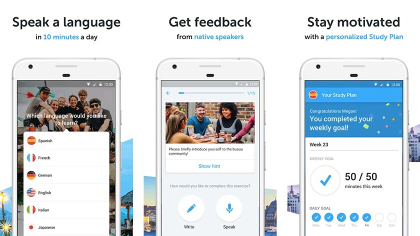 Busuu là một trong ứng dụng học tiếng Anh phổ biến nhất hiện nay. Ứng dụng này cũng hỗ trợ nhiều ngôn ngữ khác. Busuu mang đến cho người dùng những bài học từ vựng - ngữ pháp theo kiểu truyền thống, bao gồm ngữ pháp, chính tả, từ, cụm từ và tiếng Anh đàm thoại.
