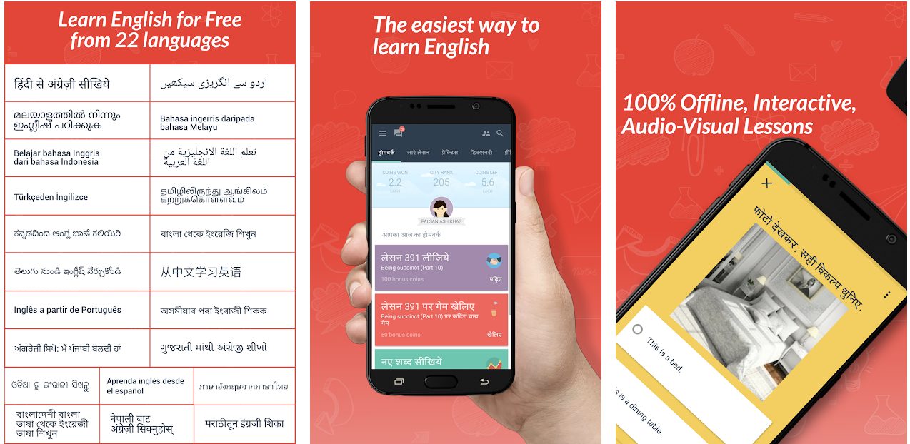 Hello English có tới bài học tương tác và miễn phí 100%, từ điển 10.000 từ và giáo viên hỗ trợ online. Bạn sẽ được học kỹ năng nói tiếng Anh và luyện ngữ pháp cơ bản, có thể thực hành ngay trong giao tiếp hàng ngày. Toàn bộ bài học đều được cung cấp offline để bạn chủ động hơn trong việc học tập. Đan xen với phần lý thuyết ngữ pháp tiếng Anh chính là các trò chơi giáo dục hấp dẫn, giúp bạn rèn luyện 4 kỹ năng tiếng Anh cơ bản là đọc, viết, nghe và nói.