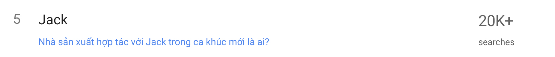 Do Google là công cụ tìm kiếm được sử dụng phổ biến nhất hiện nay tại Việt Nam, nên việc Jack lọt top xu hướng tìm kiếm của Google cũng phần nào cho thấy sức hút mạnh mẽ của chàng ca sĩ tài năng.