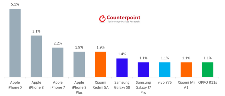 Những thông tin mà Counterpoint Research trái ngược với xu hướng thông tin gần đây liên quan đến iPhone X. Samsung được cho là đang nhận được các đơn đặt hàng thấp hơn kì vọng cho tấm nền màn hình OLED được sử dụng trong chiếc iPhone cao cấp nhất cỉa Apple. Tương tự, TSMC cũng cho biết hãng này đang nhận được đơn đặt hàng cho chip xử lý thấp hơn dự kiến. Các thông tin tương tự cũng được các công ty cung ứng linh kiện camera TrueDepth và chip quản lý năng lượng cho Apple cũng được phát đi.