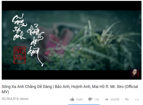 MV Sống xa anh chẳng dễ dàng đạt trên 40 triệu lượt xem tại thời điểm thực hiện bài viết.