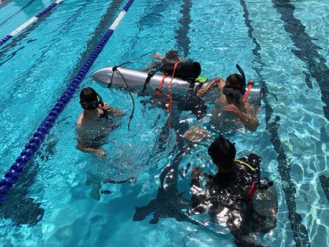 Tàu ngầm mini của Elon Musk được thử nghiệm tại một bể bơi ở Los Angeles, Mỹ.