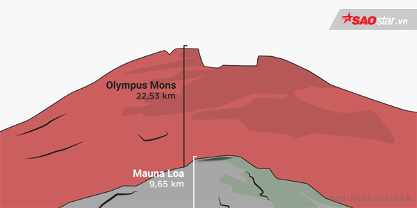 Núi nửa Olympus Mons trên sao Hỏa cao gấp hai lần ngọn Mauna Loa ở Hawaii, núi lửa được xem là lớn nhất trên Trái đất.