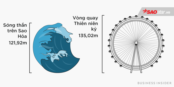 Đại dương trên Sao Hỏa cũng có sóng thần và sóng thần cao nhất ở đây có thể đạt tới độ cao trên dưới 121,92 mét, chỉ thấp hơn Vòng quay Thiên niên kỷ ở London một chút.