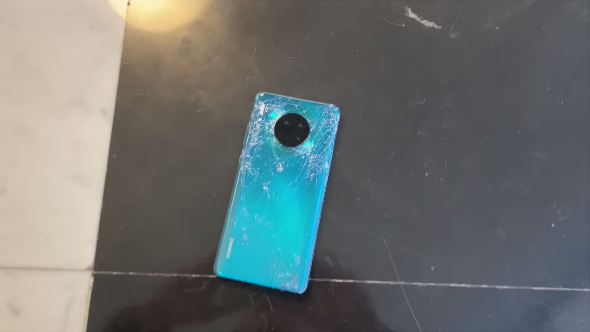 Màn hình chiếc Huawei Mate 30 cũng bị ảnh hưởng nghiêm trọng và đặc biệt máy không thể hoạt động sau cú rơi từ độ cao hơn 10 mét. (Ảnh: TechRax)