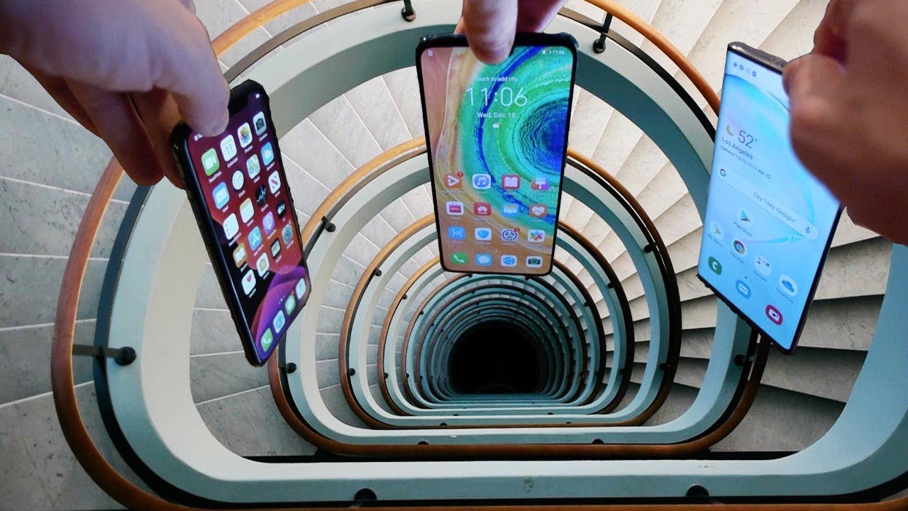 Mới đây, YouTuber này đã trở lại trong một video mới, trong đó thực hiện thả rơi chiếc iPhone 11 Pro Max, Samsung Galaxy Note10 và Huawei Mate 30, ba trong số những chiếc smartphone hàng đầu hiện tại. (Ảnh: TechRax)
