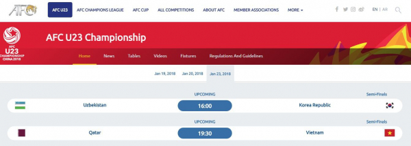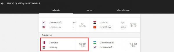 Trước đó, thông tin về giờ thi đấu trận U23 Việt Nam và U23 Qatar trên Google cũng bị nhầm sang 18 giờ 30 phút (giờ VN), thay vì 15 giờ (giờ VN). Dù vậy, sai sót này bắt nguồn từ chính trang chủ AFC.