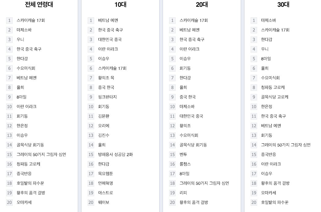 Xu hướng tìm kiếm tại Hàn Quốc cuối ngày 16/01 (giờ Việt Nam) có nhiều từ khoá liên quan đến trận Việt Nam - Yemen tại Asian Cup 2019 xếp ở vị trí cao.