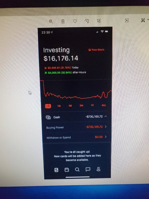 Trong hình ảnh trên, có thể thấy sức mua và tiền mặt của tài khoản đang âm song nó không được coi như những khoản nợ thông thường, Khoản 730.000 USD có thể đang thể thiện mặt bên kia của một giao dịch quyền chọn chưa được thanh toán và giá trị của các cổ phiếu cơ sở trong quyền chọn đó.