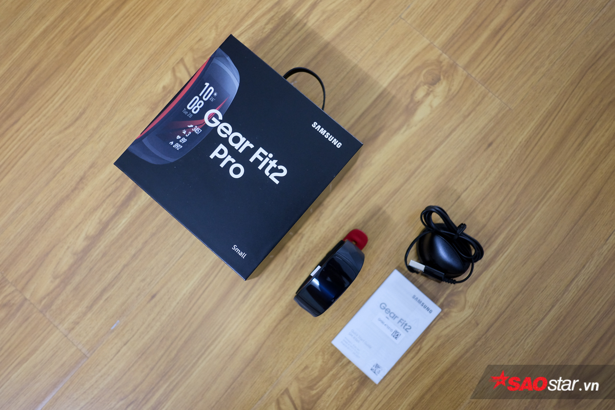 Bên trong hộp đơn giản chỉ có vòng đeo thông minh Gear Fit2 Pro, củ sạc và sách hướng dẫn sử dụng.