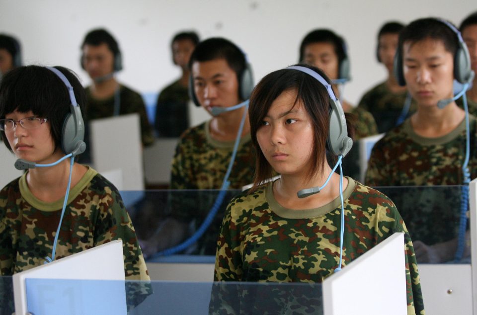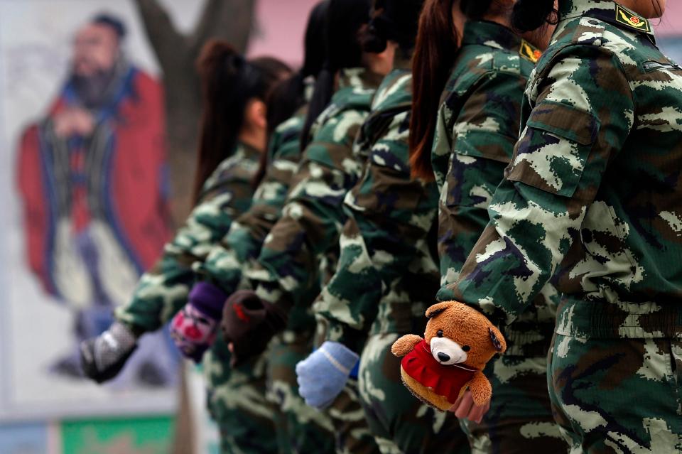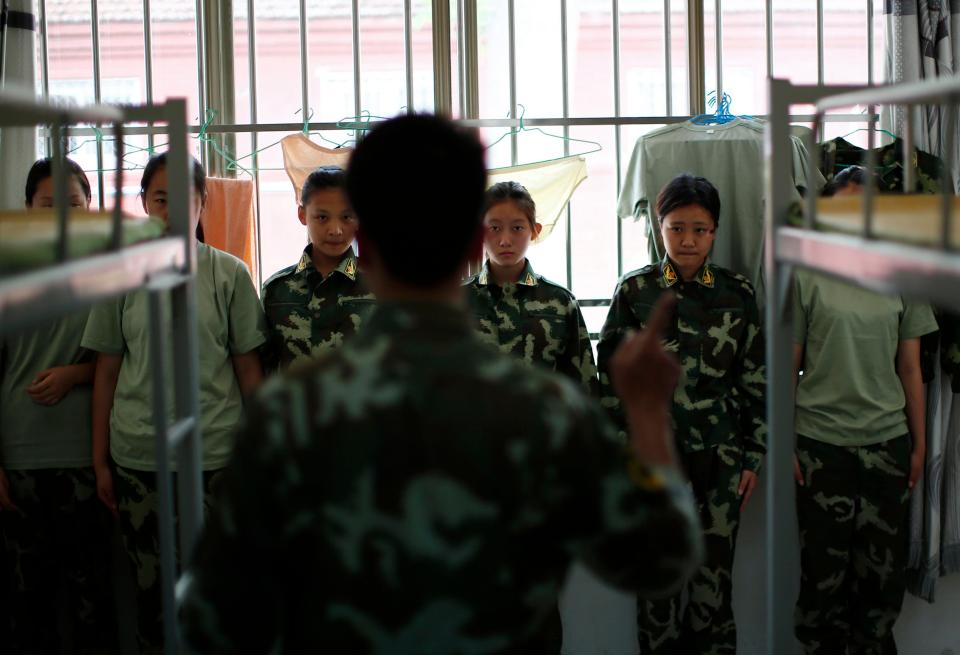 Một số học viên nữ bị bắt đứng cạnh giường để kiểm tra tại một trại cai nghiện Internet ở Trung Quốc.
