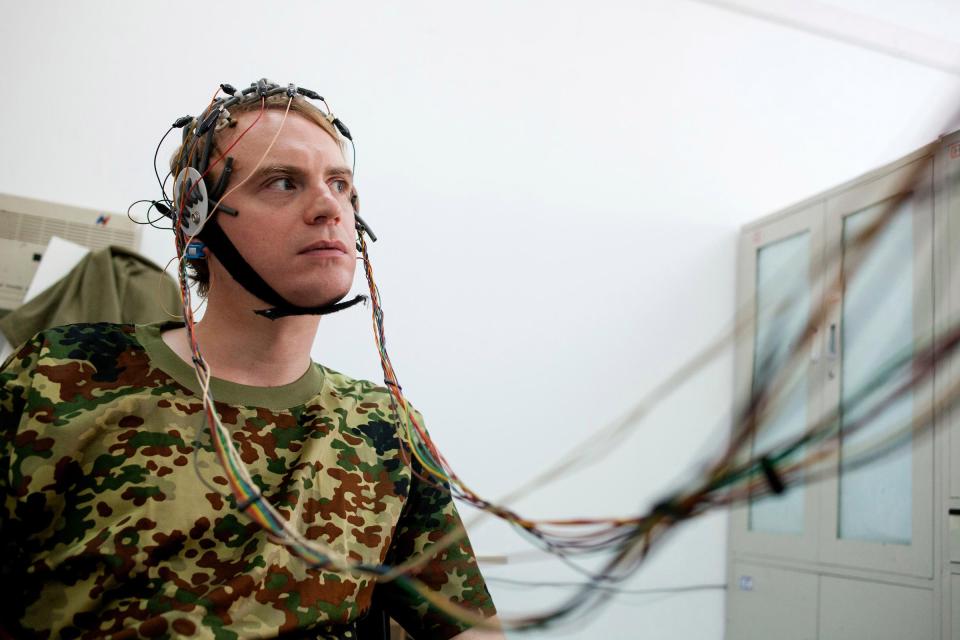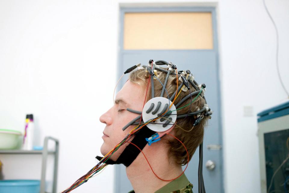 Jamie sử dụng một thiết bị đo hoạt động não tại một trung tâm điều trị nghiện Internet ở Bắc Kinh.
