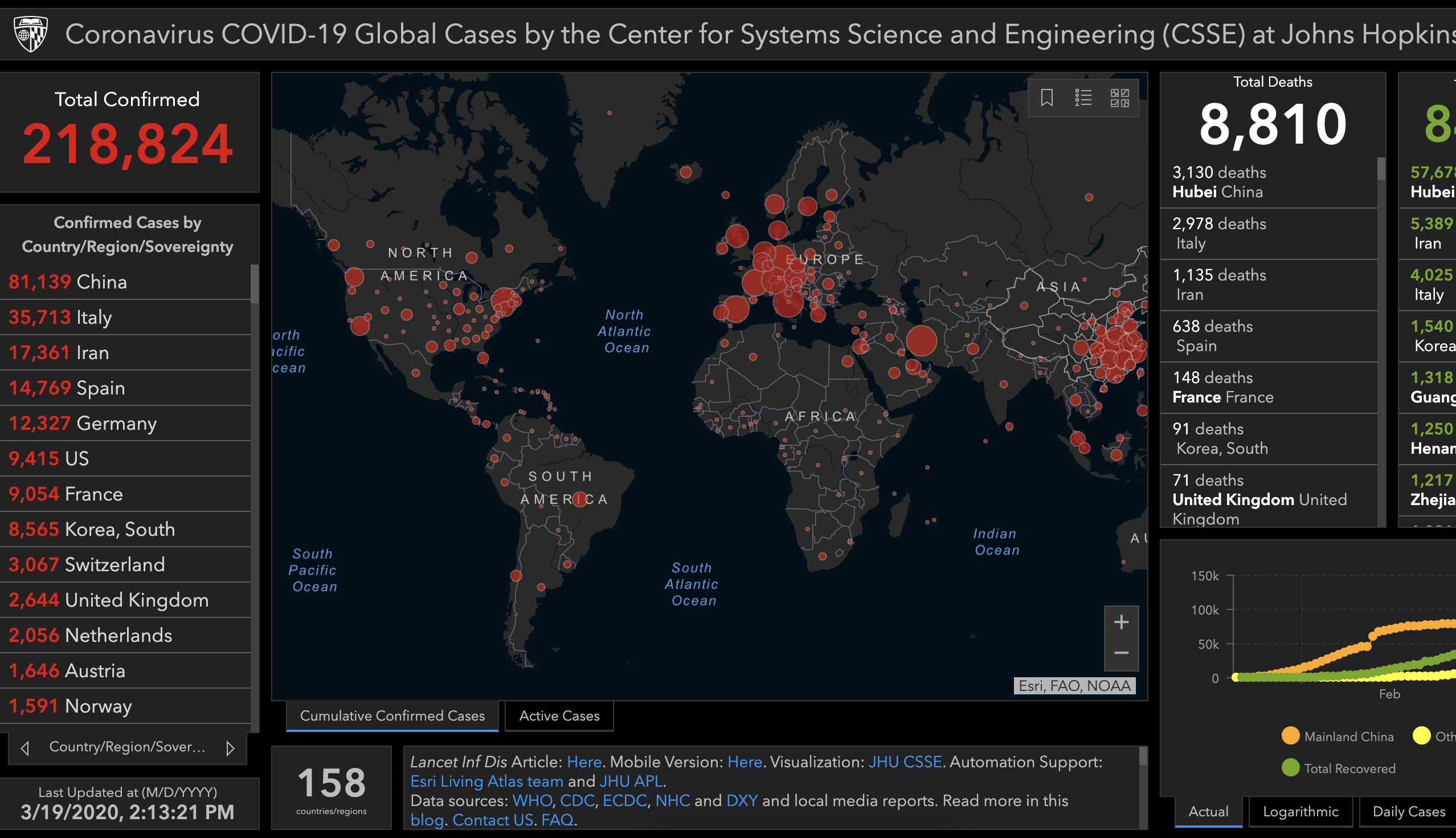 Trang web cung cấp số liệu thống kê tình hình lây nhiễm virus corona theo thời gian thực của Đại học Johns Hopkins.