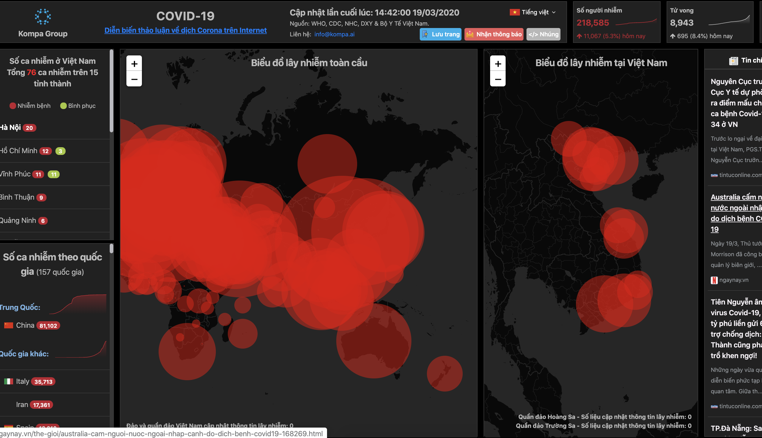Tại Việt Nam, Tập đoàn chuyên về các giải pháp quản lý và phân tích thông tin dựa trên AI - Kompa Group cũng đã ra mắt trang web cung cấp số liệu thống kê tình hình lây nhiễm COVID-19 theo thời gian thực cho người dân: