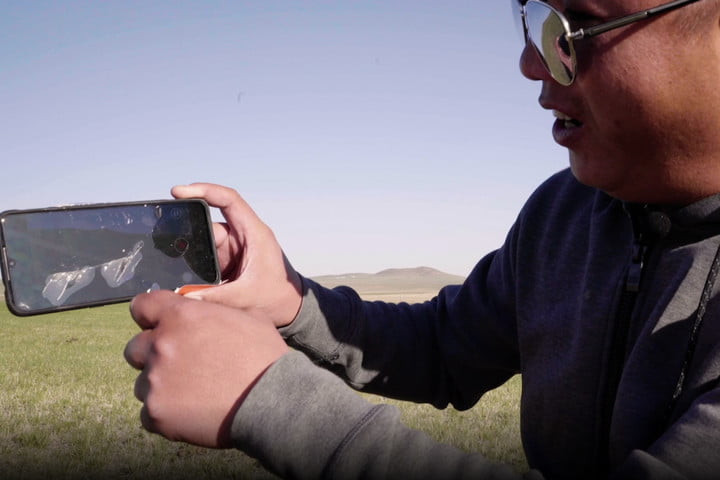 Khi được thả xuống đất, nhóm tham gia thử nghiệm đã phải sử dụng một chiếc Mitsubishi Pajero 4x4s và máy bay không người lái để định vị vị trí của chiếc điện thoại. Điều đáng ngạc nhiên là khi được tìm thấy, chiếc điện thoại này vẫn đang ở chế độ quay hình và bị hư hại nhỏ ở tấm nền bảo vệ màn hình.