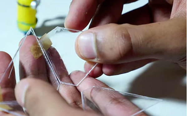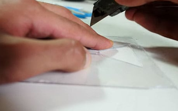 - Bước 3: Gắn bốn mảnh nhựa lại với nhau với cạnh dài nhất nằm ở phía trên cùng.