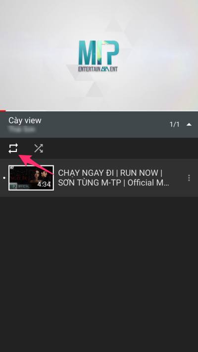Sau khi hoàn thiện bước này, bạn có thể vào Tab Library ở phía cuối màn hình để tìm playlist mình vừa tạo. Nhấn chọn vào nó và nhấn vào biểu tượng Repeat để đặt playlist vào chế độ phát lặp. Do trong playlist lúc này chỉ có một video duy nhất nên nó tương đương với việc bạn phát lặp video đó.
