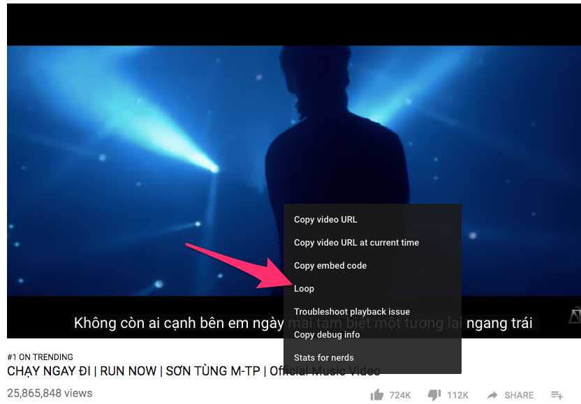 Trên nền tảng desktop: Tất cả những gì bạn cần làm là mở video mình yêu thích, nhấn chuột phải lên khung chơi video và chọn Loop (vòng lặp). Lúc này, nội dung video sẽ được tự động lặp lại từ đầu khi kết thúc mà bạn không cần làm thêm điều gì.