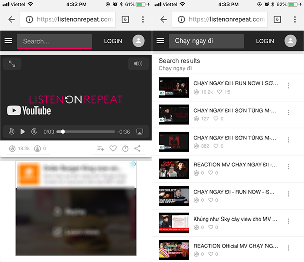 Trên nền tảng trình duyệt web di động: Bạn không thể dùng tính năng Loop trên nền tảng trình duyệt web di động. Tuy nhiên, giờ là lúc bạn có thể tận dụng các website như ListenOnRepeat.
