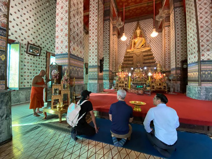 Tim Cook ghé thăm một ngôi chìa Phật giáo ở Thái Lan. (Ảnh: Twitter)
