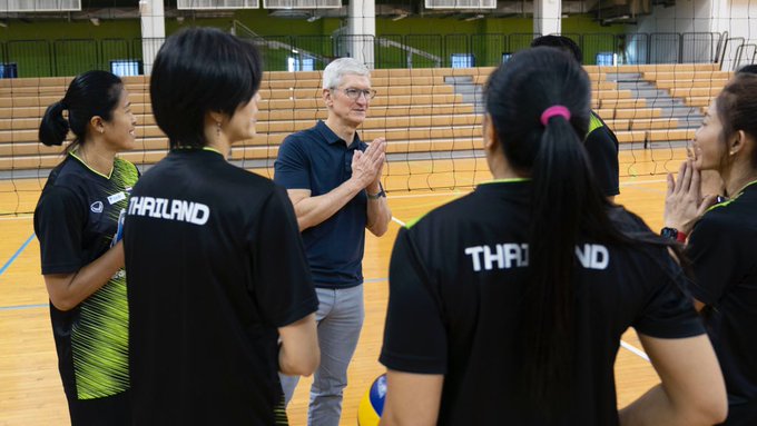 Đáng nói, trên Twitter cá nhân, Tim Cook chúc mừng đội tuyển bóng chuyền nữ Thái Lan đã dành chức vô địch SEA Games 2019. “Thật tuyệt vời được gặp HLV Danai và đội tuyển bóng chuyền và xem cách họ dùng Apple Watch và iPad trong tập luyện,” Tim Cook nói.