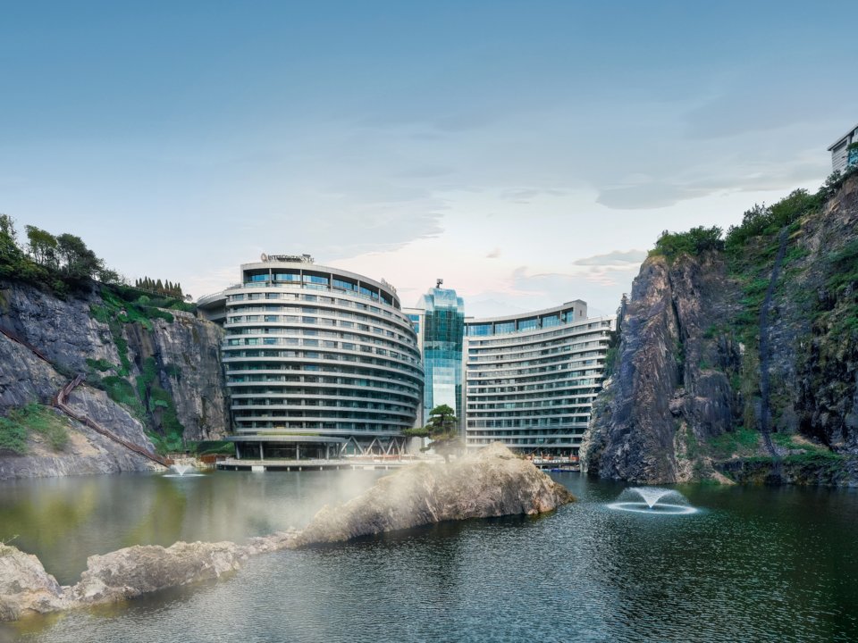 Khách sạn này được xây dựng trong một hồ nước ở chân núi Sheshan.