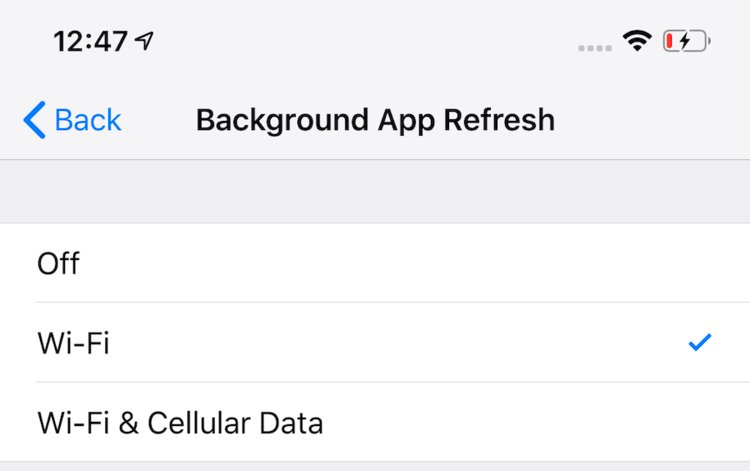 Nếu bẫn muốn ứng dụng cập nhật khi chạy nền nhưng không muốn ảnh hưởng đến dữ liệu di động, bạn có thể thiết lập để iPhone chỉ làm điều này khi được kết nối với mạng Wi-Fi. Điều này cũng có thể giúp tiết kiệm dung lượng pin bởi những ứng dụng này sẽ làm mới với tần suất thấp hơn.