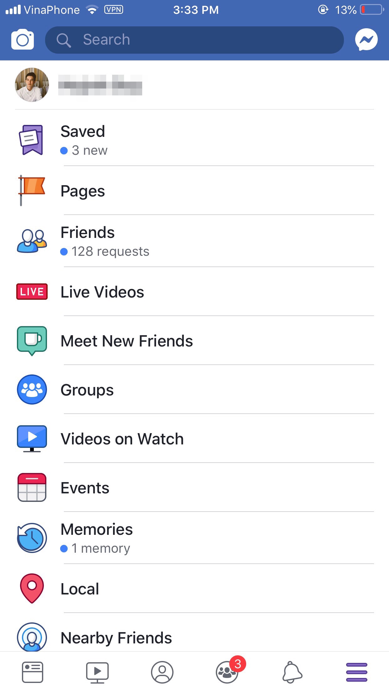 Đầu tiên bạn nhấn vào biểu tượng 3 gạch ở góc màn hình, tiếp đến chọn “Kết bạn mới” (Meet New Friends) vừa được Facebook cập nhật.