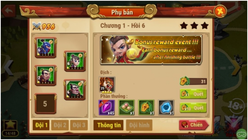 Đánh giá một cách cơ bản, tựa game này có lối chơi khá đơn giản. Bạn chỉ việc vượt qua các phụ bản để thực hiện nhiệm vụ chính tuyến hoặc thu thập nguyên vật liệu để nâng cấp cho tướng lĩnh hoặc cường hóa trang bị. Khác với những game cùng loại, người chơi không cần phải xây dựng hay nâng cấp kiến trúc mà chỉ cần sử dụng các tính năng có sẵn như lôi đài, cướp mỏ, xuất trại hay đấu trường, cửa hàng…