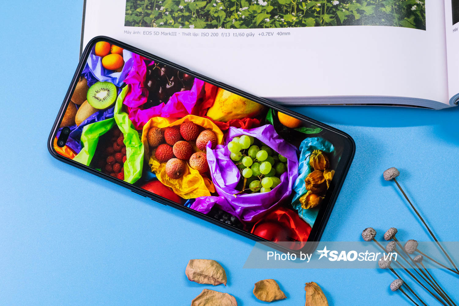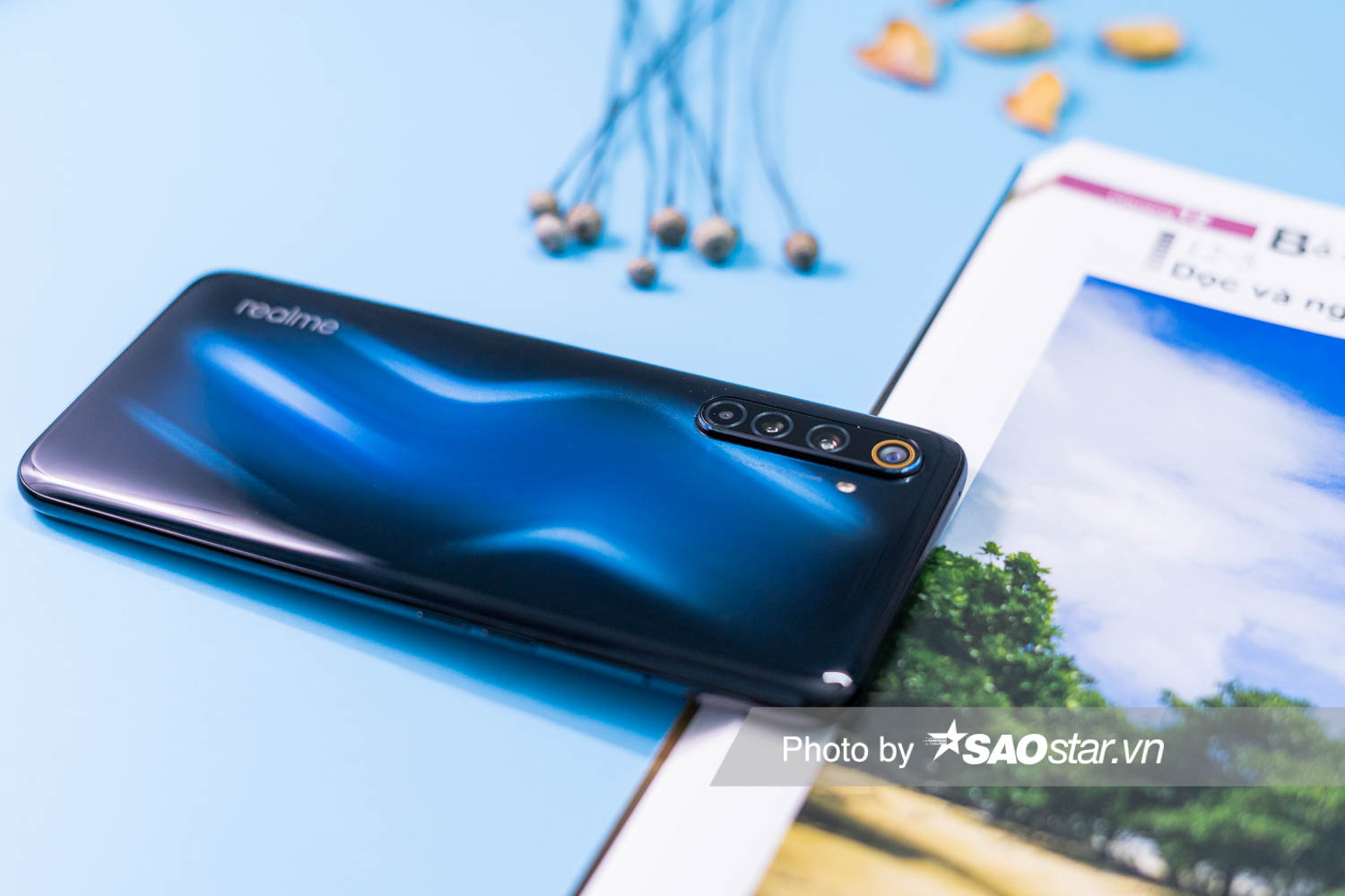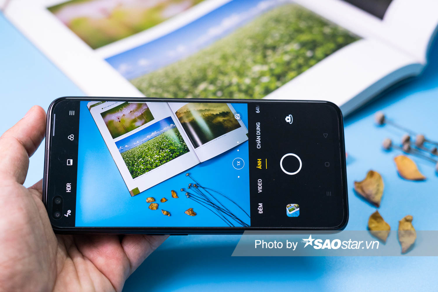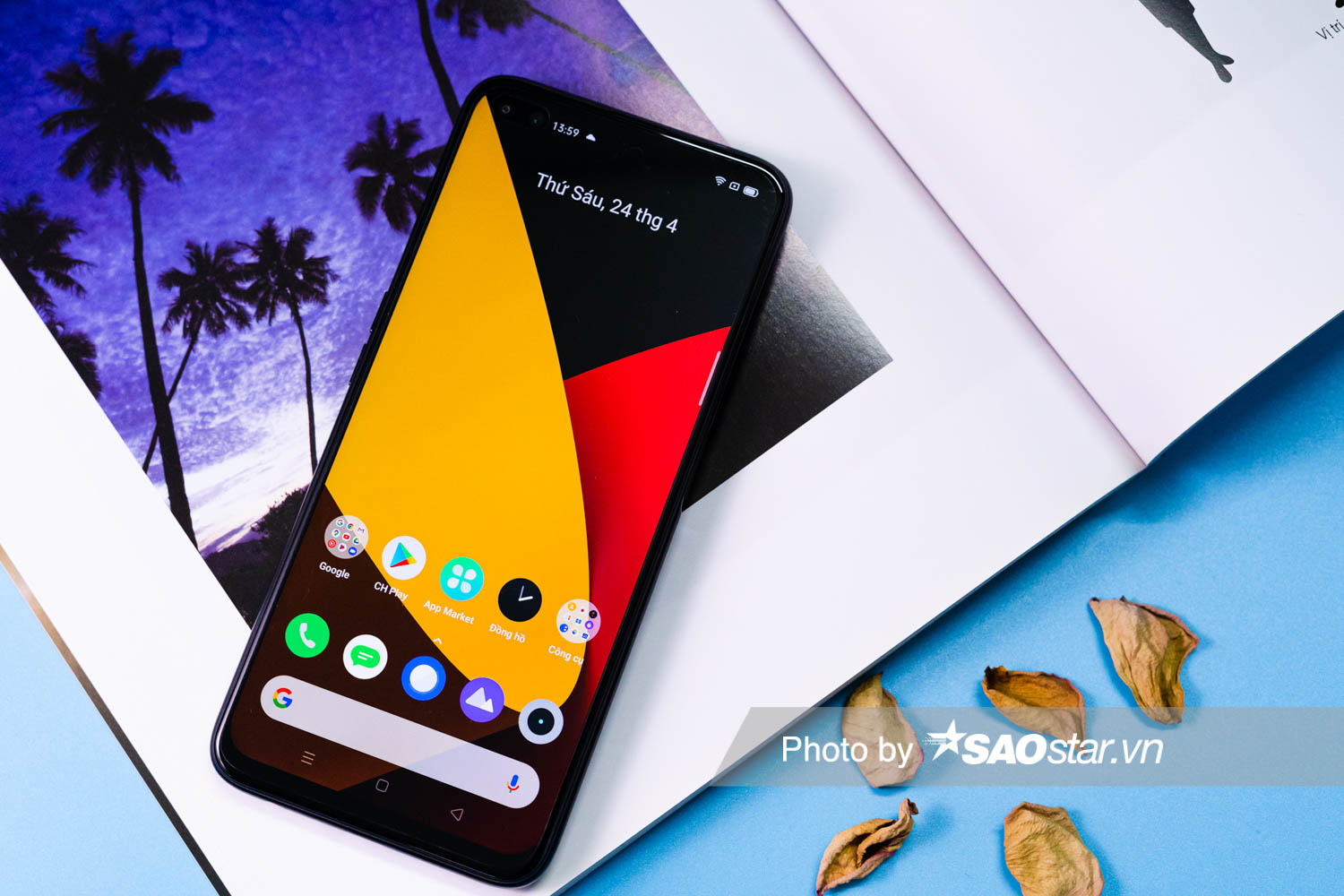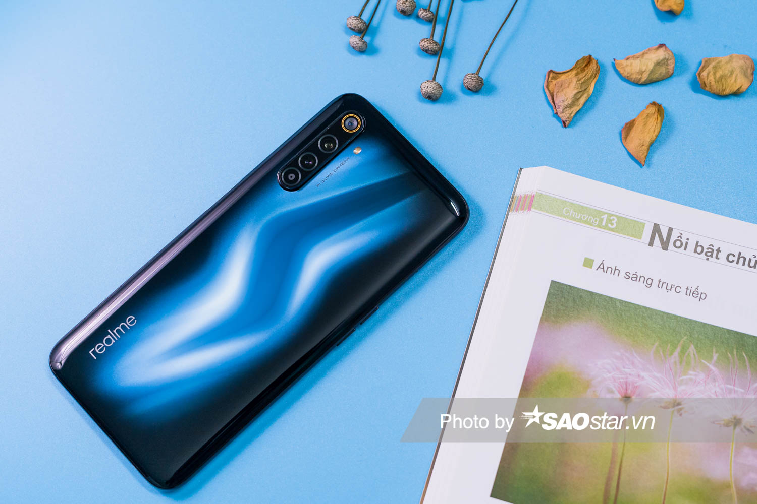 Ở mặt trước, camera selfie kép là đặc điểm khác tiếp theo bạn có thể dễ dàng nhận ra. Giống như các smartphone khác sở hữu cụm camera nốt ruồi dài như này, việc hiển thị toàn màn hình trên Realme 6 Pro không quá chiếm chỗ hay gây khó chịu như bạn lo lắng ban đầu. Tuy vậy thích thiết kế kiểu này hay không thì còn phụ thuộc vào gu thẩm mỹ mỗi người.