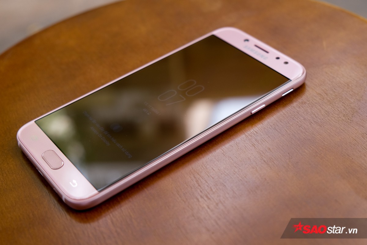 May mắn thay, Saostar đã có dịp được trên tay Galaxy J7 Pro màu hồng. Và chúng ta hãy cùng chiêm ngưỡng vẻ đẹp cận cảnh của smartphone này nhé: